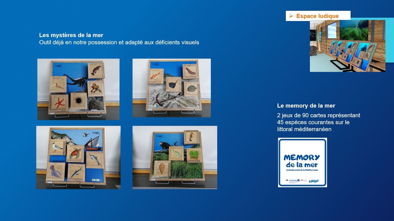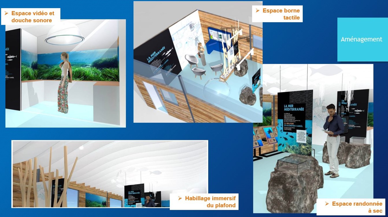 - Area terminale tattile: accesso a molte informazioni sul patrimonio subacqueo / collegamento con gli elementi notevoli del territorio… consultazione della carta della qualità